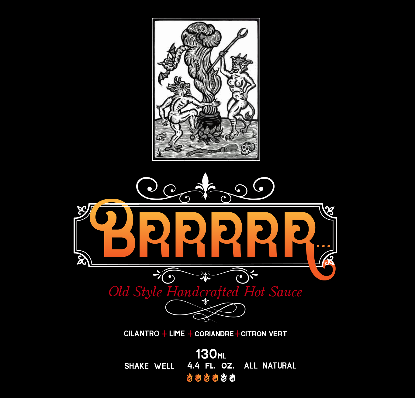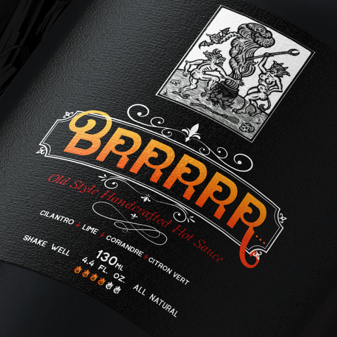 diseño de marca, y etiqueta para picantes artesanales Brrrrr...